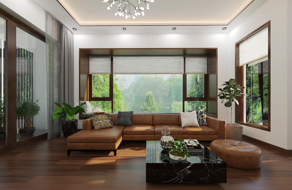 Lời khuyên cho quý vị khi lựa chọn phong cách hiện đại đó là hãy thiết kế một phòng khách mở với hệ cửa kính lớn, ánh sáng và luồng sinh khí bên ngoài đi vào không gian sẽ giúp cho căn phòng chính của gia đình trở nên ấn tượng hơn.