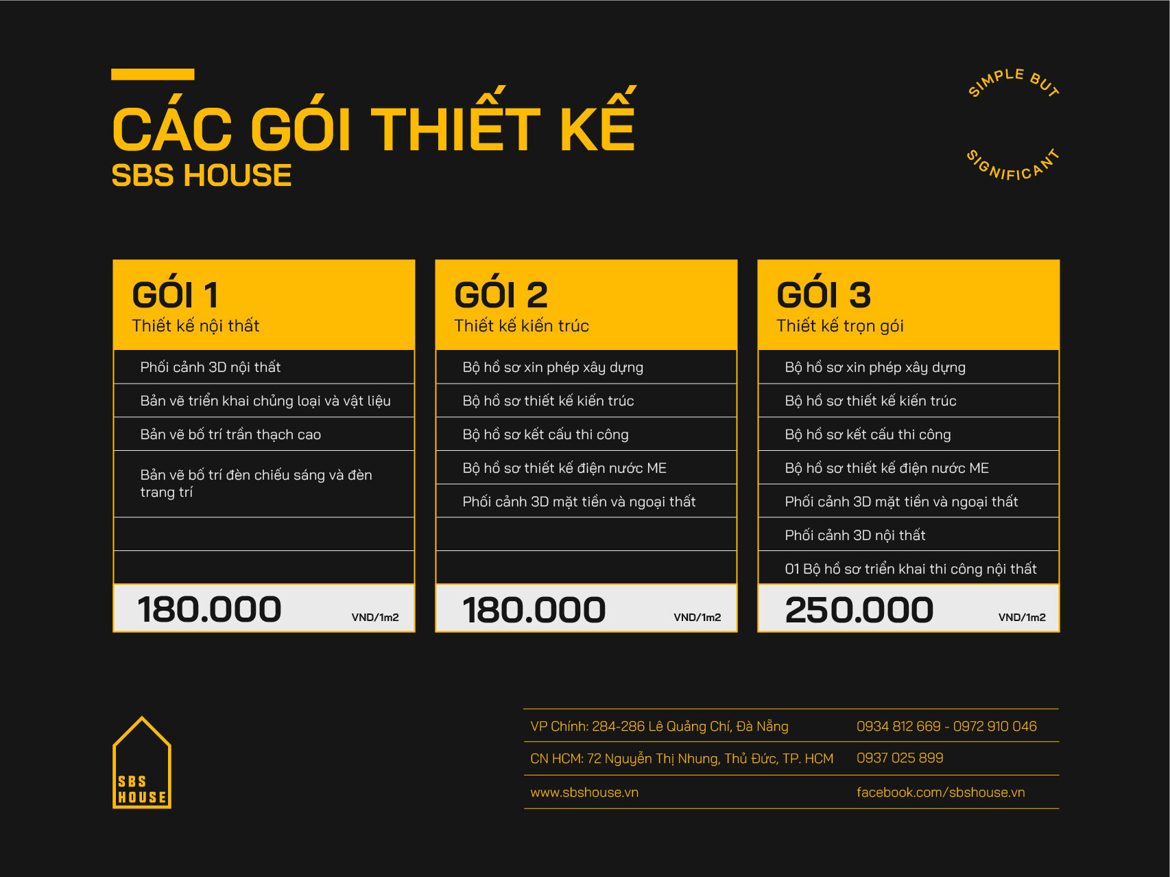 Bảng giá thiết kế nhà của SBS HOUSE tại miền Trung